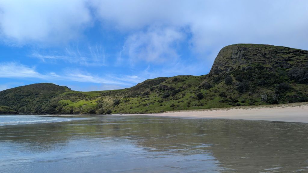 After getting up for the day, gratefully undisturbed, I headed down to Spirits Bay again.