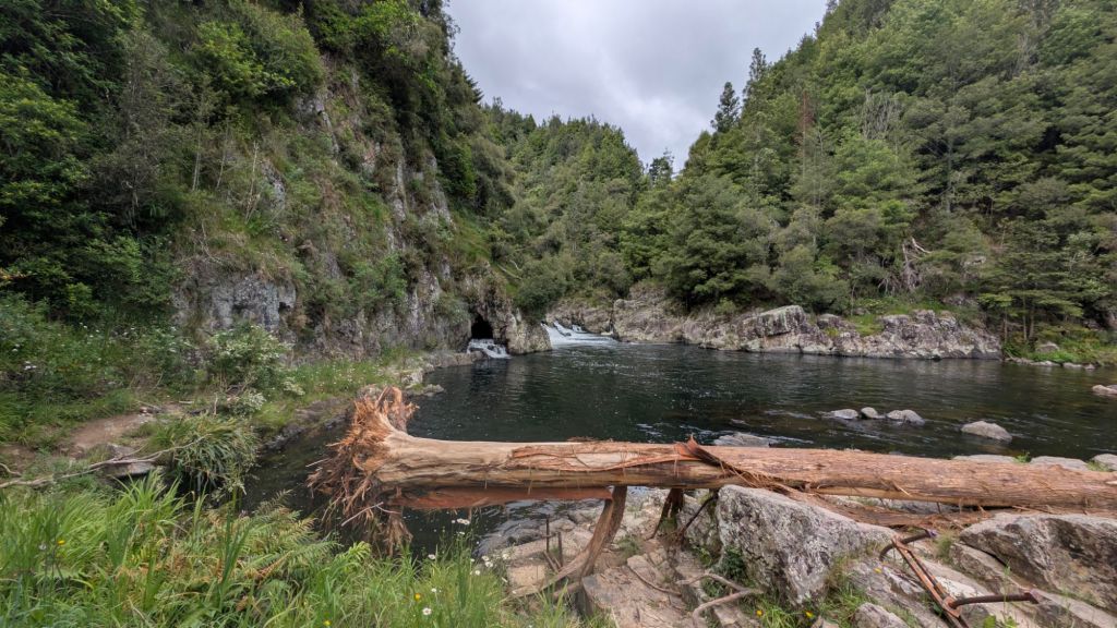 Anyway, from there, I headed over to the Waitawheta Waterfalls, a beautiful area in the Karangahake region. It was an easy hike from the campground that included crossing the river a couple times and then going through probably a 100+ meter tunnel excavated through the hillside next to the river.
