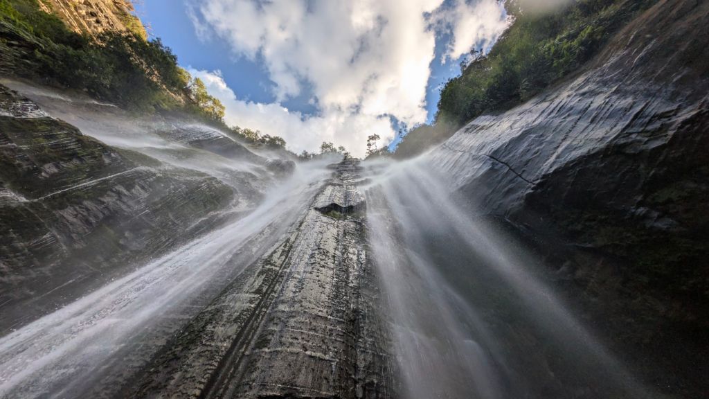 It’s beautiful from a distance, but it’s even more spectacular if you wade out into the fall pool and walk all the way up to the shower and water. The 58 meter falls has a few very minor cascades, but it feels pretty much like it drops almost straight down when you’re standing below it.