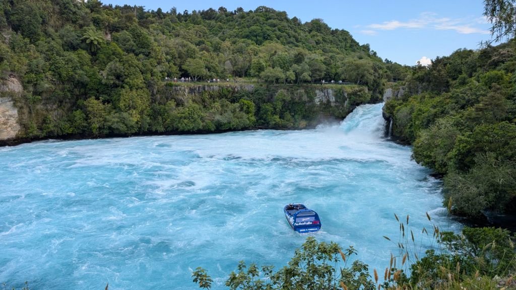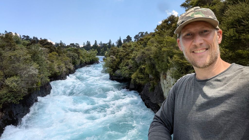 I bid farewell to Pierre and family and then headed down river to revisit Huka Falls, taking a few pictures, running into Pierre and company again (we’re taking the same route today for a bit, they already planning to go Huka Falls and then adding the airplane McDonald’s to the list after I told them about it).