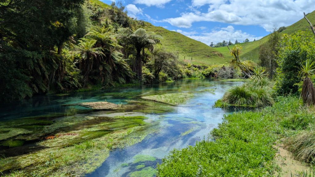 Got gas and then headed to a place called Putaruru Blue Spring, a crystal clear spring, beautifully colored with blues and greens. I think the water that comes out has been filtering through the Mamaku Plateau for 50-100 years before it bubbles up and creates this pristine river.