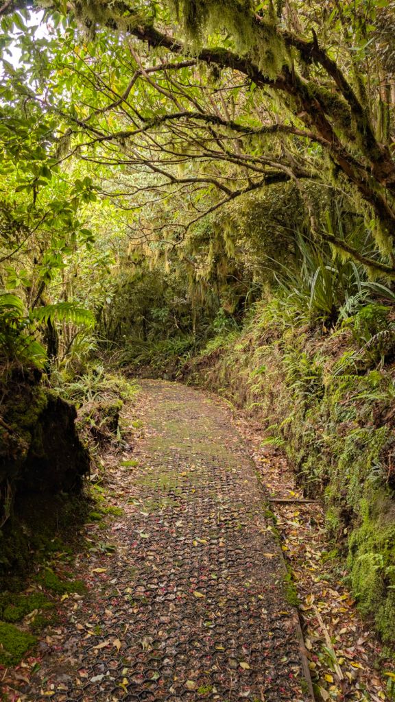 The walk itself was in short-growth rain forest, by the looks of things (moss all over all the bright yellow-green trees and plants growing everywhere).