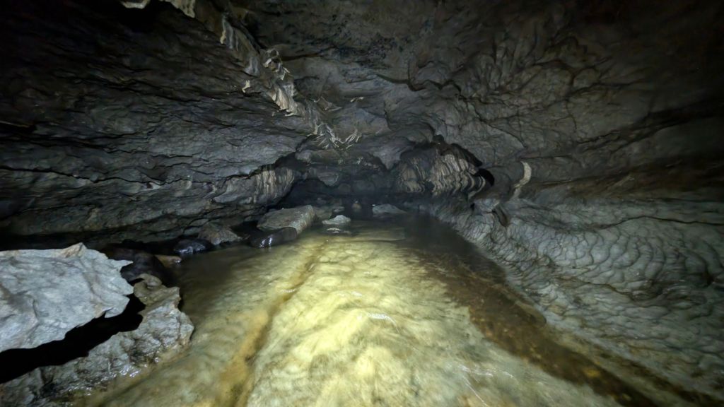 I then followed him through the river (it’s a river cave) to a spot where he had everyone sit down and turn off their lights.