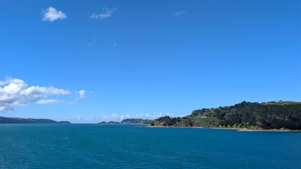 The drive from the north end of Lake Wairarapa to the ferry was a bit over an hour and involved going over a decent small-mountain pass (The mountains aren’t super tall according to my experience and standards, but they are tall enough that the east side of the mountains seems to be much dryer.