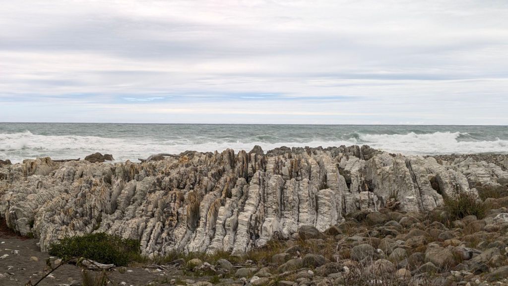 From there, I headed south, running into accident traffic immediately south of the Paparoa Point Rest Area–just in time to hop off onto a large gravel pull out to wait out the gridlock. π