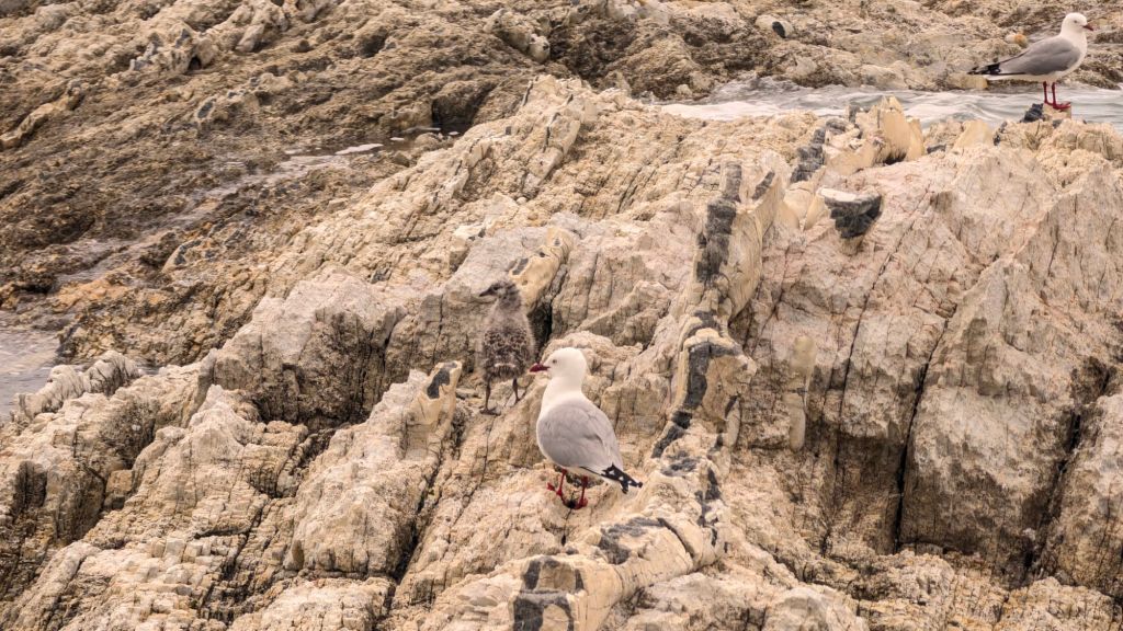 At first, it didn’t seem like much, but after finally giving up on trying to keep my feet dry and then crossing a stream to go further down the beach, I ran into a treasure trove of fun little treasures–curious rock formations, a stunning paua shell, an injured seal, and baby seagulls, among other things.