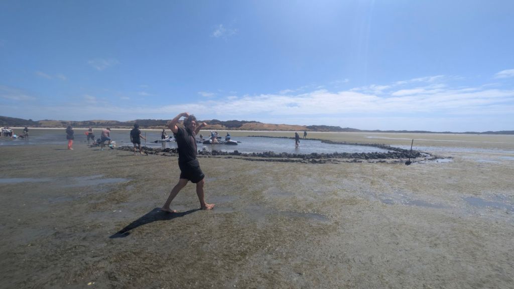 When the tide goes out so far, your water source can be a good long way away, which requires getting shovels and digging little mini wells to gather water from.