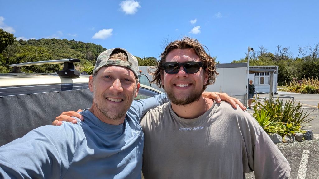 I didn’t want to say goodbye. I was having a blast traveling with him, but he was going to be heading southeast and then back to the North Island, and I was going to be heading southwest, and it seemed like it would be forcing the issue to try and figure out a way to keep hanging out together, I so we snapped some selfies and bit each other farewell, and I started heading south.