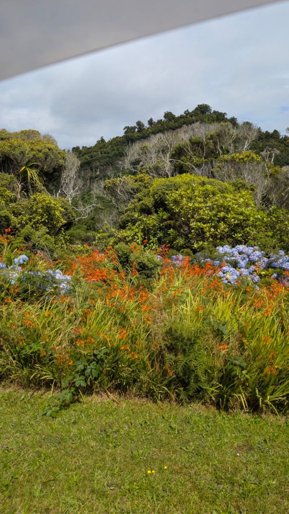 I made a brief stop at Little Wanganui Beach Reserve, where I had thought I might hang out for a while and enjoy the beach and whatnot, but it was a little crowded for my taste, so I just ended up emptying the contents of Micro John and taking some pictures of the beautiful flowers along the dirt road. 🙃
