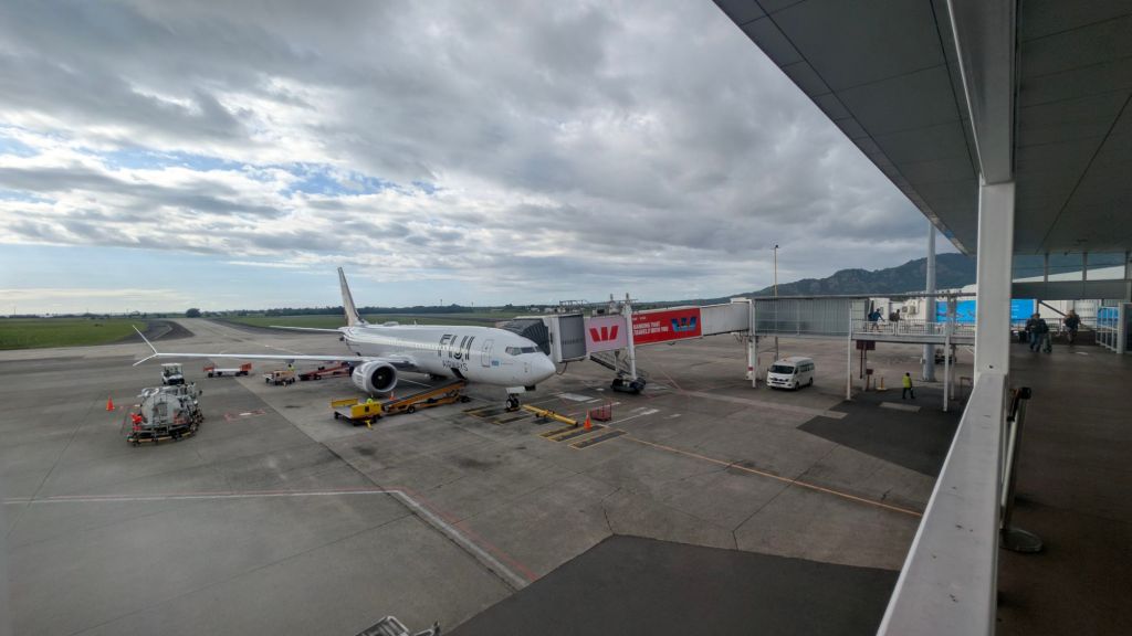 Anyway, as I was going to show my passport and digital ticket, the guy doing the inspecting told me that I needed a paper ticket, so I ended up having to go back down to the Fiji Airlines counters and weight in the big long line for all the other people who are checking baggage in order to get my paper ticket printed.