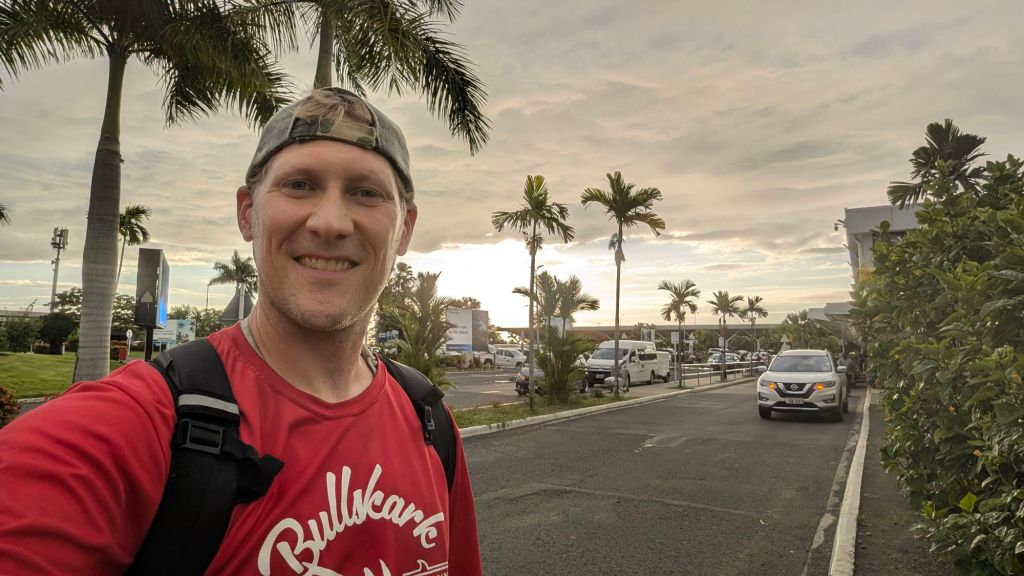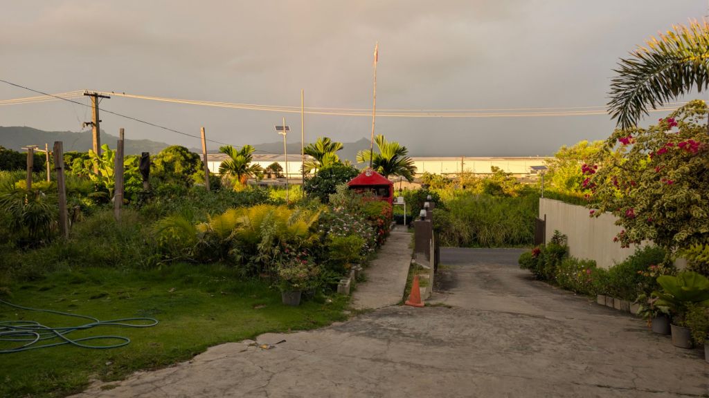 It’s about a 15-minute walk from the airport to the homestay. A 15-minute walk from the homestay to the grocery store, and a 15-minute walk from the home state to the hotel I’m going to be picked up at tomorrow, though humid and sticky.