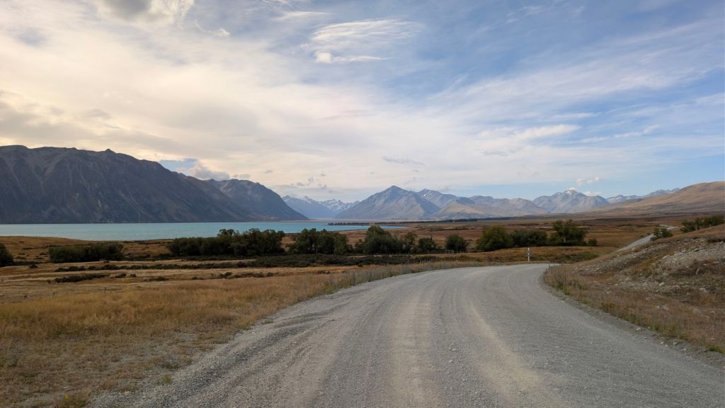 After finishing up and posting those five entries, I headed north along the east coast of Lake Tekapo, determining to reprise the experience Chase and I had three years ago, but hopefully going further this time.