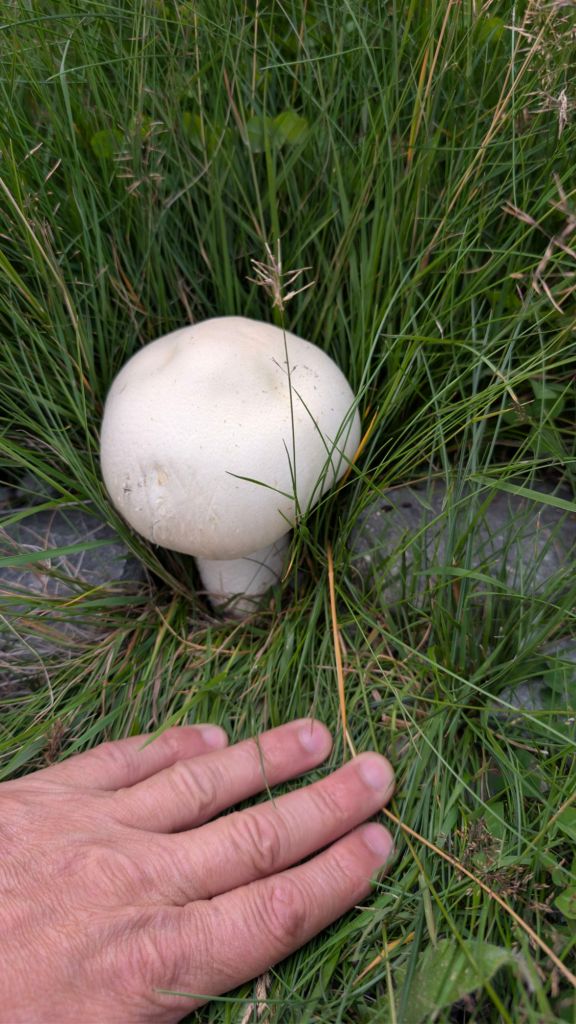 I found a very large mushroom, maybe the size of a baseball or softball, that as best I could tell was actually edible. I guess it’s known as a Giant Puffball? And they can get up to 50cm in diameter!