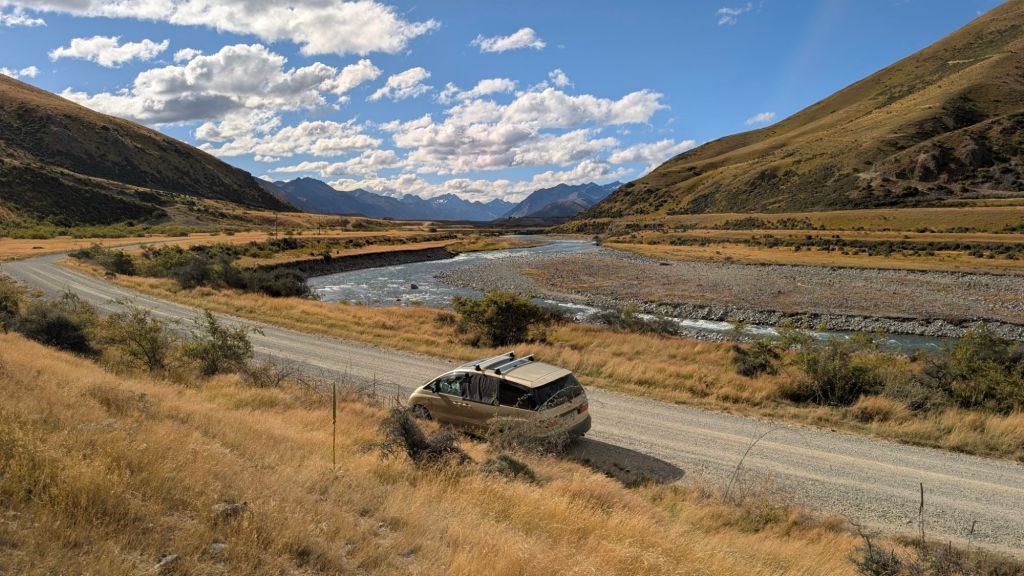 My next destination was going up the Ahuriri River Valley. Ben, one of the people who’d given me a jump on my triple jump day had mentioned it as a place he’d liked, and since I was basically trying to drive as far as I could up up every river valley, this one being the next over, was next on the list. 🙃