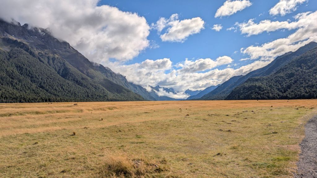 Though the forecast again called for rain on the other side of the pass at Milford Sound, it was sunny where I was, and there was a road I hadn’t yet explored that was on my side of the pass (though still a good ways back into the mountains), so I headed back in.