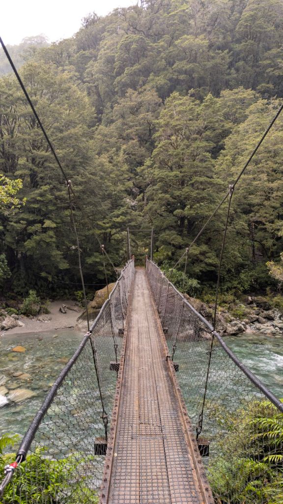 It started with a swing bridge across the river, similar to the previous, But then I got confused, because Google Maps showed two different hiking trails. Thinking I’d missed a split off somewhere, I walked back to the swing bridge, only to realize that Google trail maps were wrong in this particular case. There weren’t two trails, one to the waterfall, and one to the lake. There was a single trail, the trail going to the lake passing by the waterfall first.