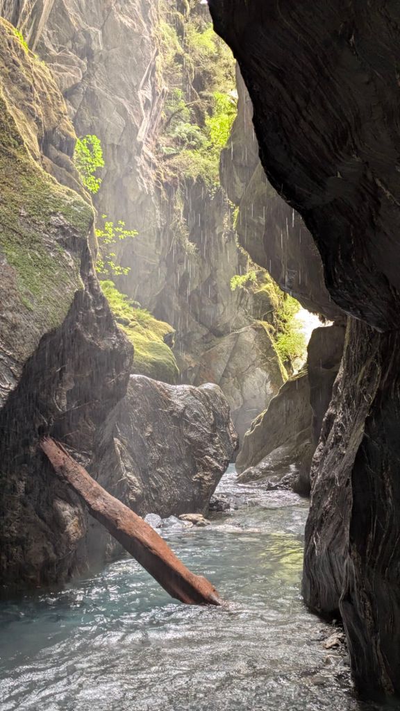 This time, however, that huge log was no longer there, having been washed the rest of the way through the slot canyon.