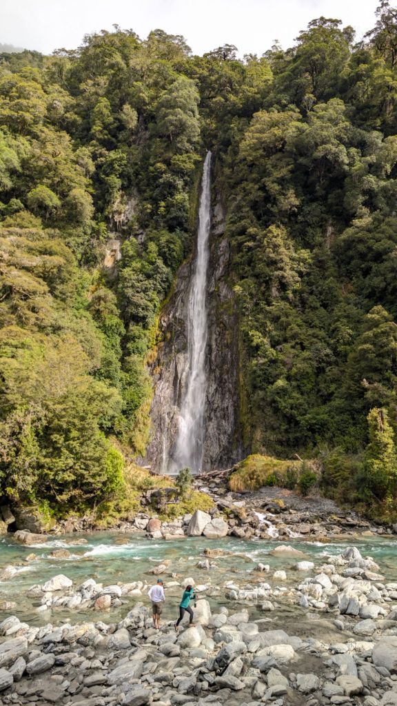 I spent a little while veging in the parking lot after using the bathroom before heading out on a sort of Haast Pass waterfall tour, revisiting a bunch of the places I stopped at with Chase last time.