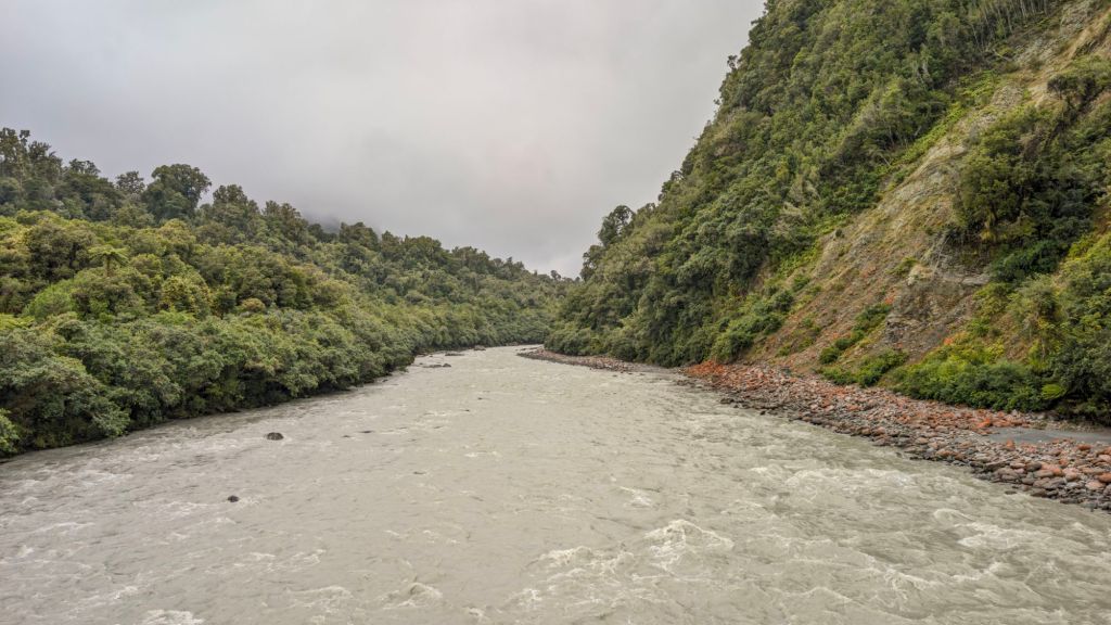 I availed myself of the toilet that was there, remembering its quirky nature from last time, and then I stopped off to take pictures from the Whataroa River bridge.