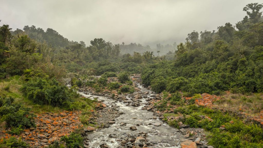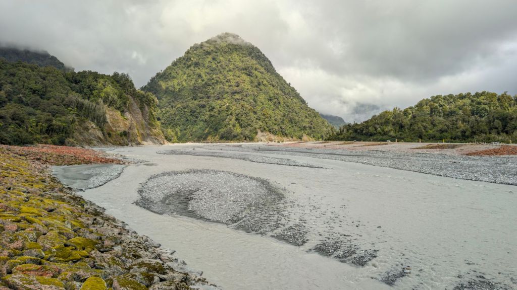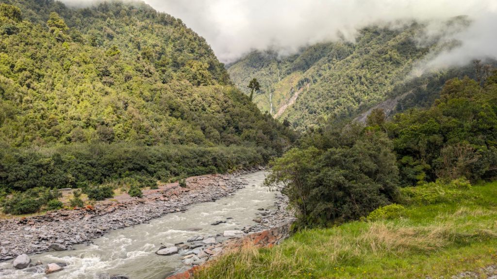 From there I headed to the Franz Joseph Glacier car park, the place I dropped Chase at last time before doing my river hike. With the rain, there wasn’t much to see, and having seen glaciers before, I wasn’t feeling the need to do the long walk to see the glacier. I would have liked to have seen the waterfalls, but they were so. many. people. that I just… wasn’t feeling it.