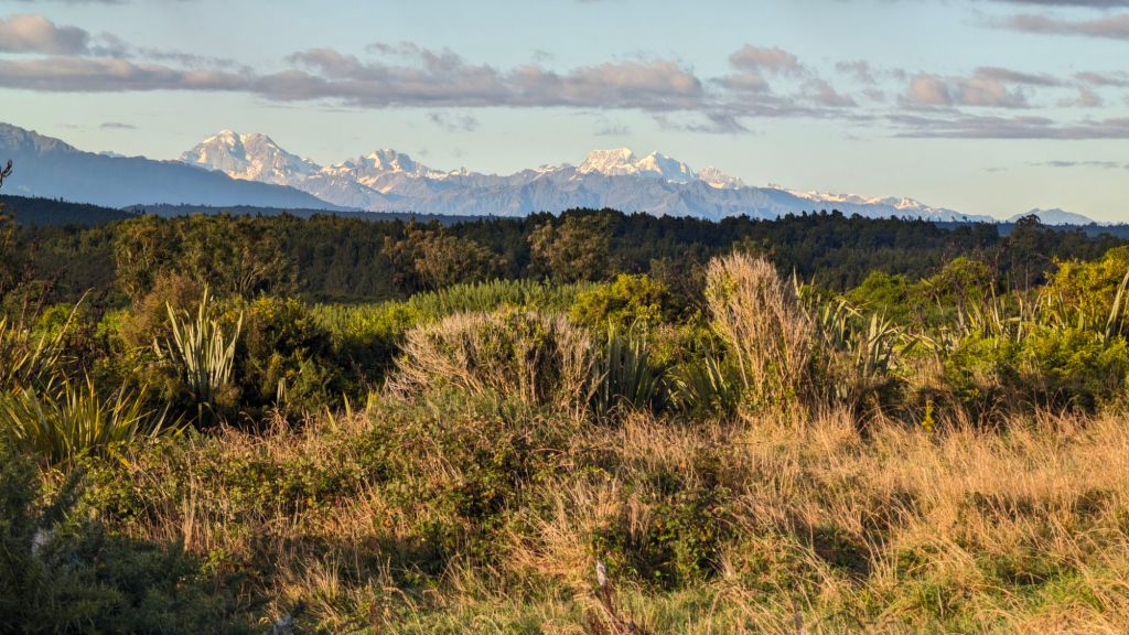 I was pretty shocked to find the sky’s super duper clear and a view of the Southern Alps in the distance. I hadn’t expected the clouds to go away, otherwise I might have stayed for one more night down south in the hopes of getting a clear view of the mountains from the coast.