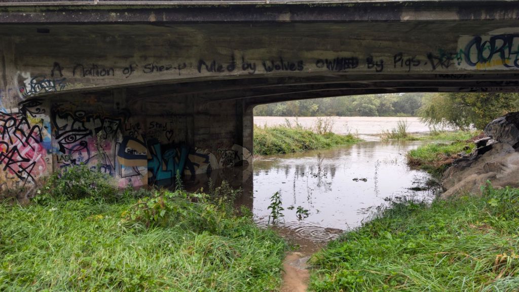 As I pulled out of the parking area, onto the road, and started going over the bridge, I looked at the river below and…