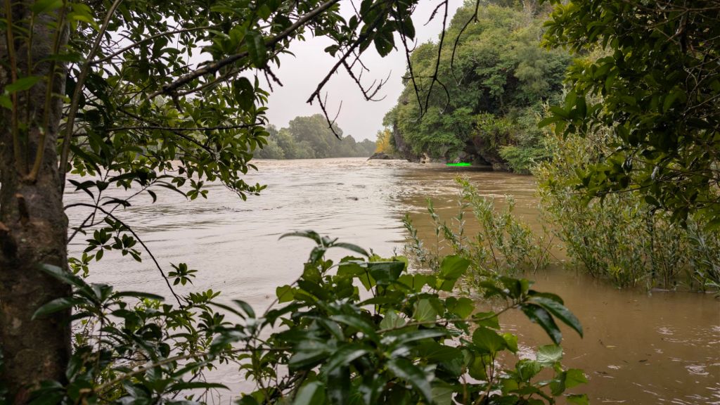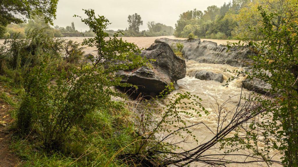 What had one spin large boulders towering above the river below were now mostly completely covered in water, the gaps between the exposed portions now forming rushing rapids.
