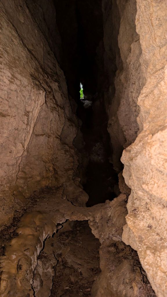 As I made the little scramble up the hillside to go back to the cliff tops that I like to hang out at, I passed by the little cave that I’ve seen before but haven’t really explored. I don’t think I’ve ever done much more than just stand at the entrance and peer in.