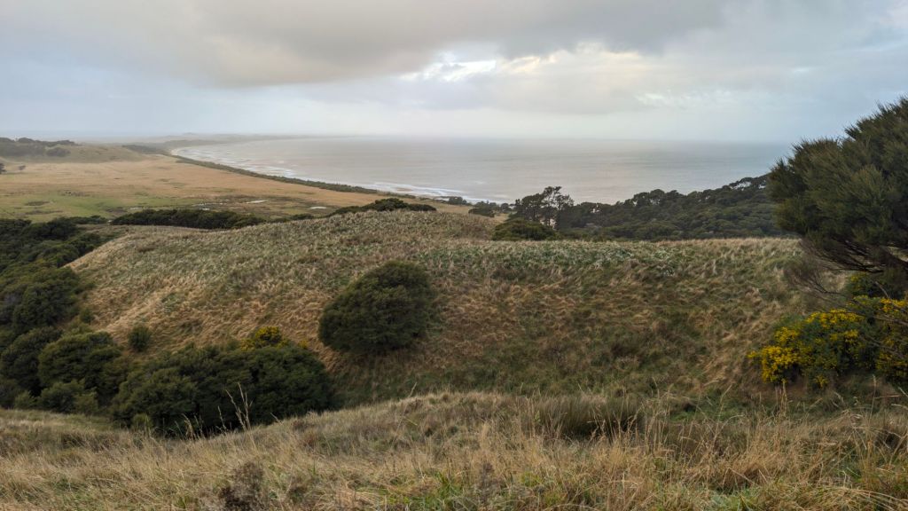 They’ve been in the middle of construction on the trail, building a predator barrier fence I think from one side of the spit to the other, I think, in the hopes of keeping possums and other predators off the spit.