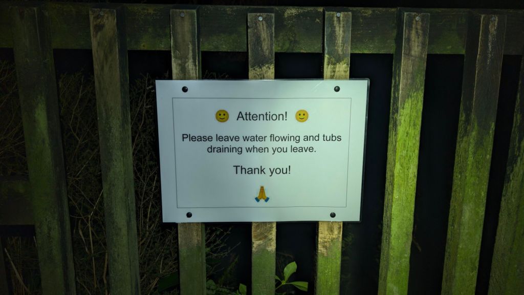But it wasn’t an issue being out of the water at all, as I was hampered by not a single sand fly during the entire sign posting and hot tub soaking experience.
