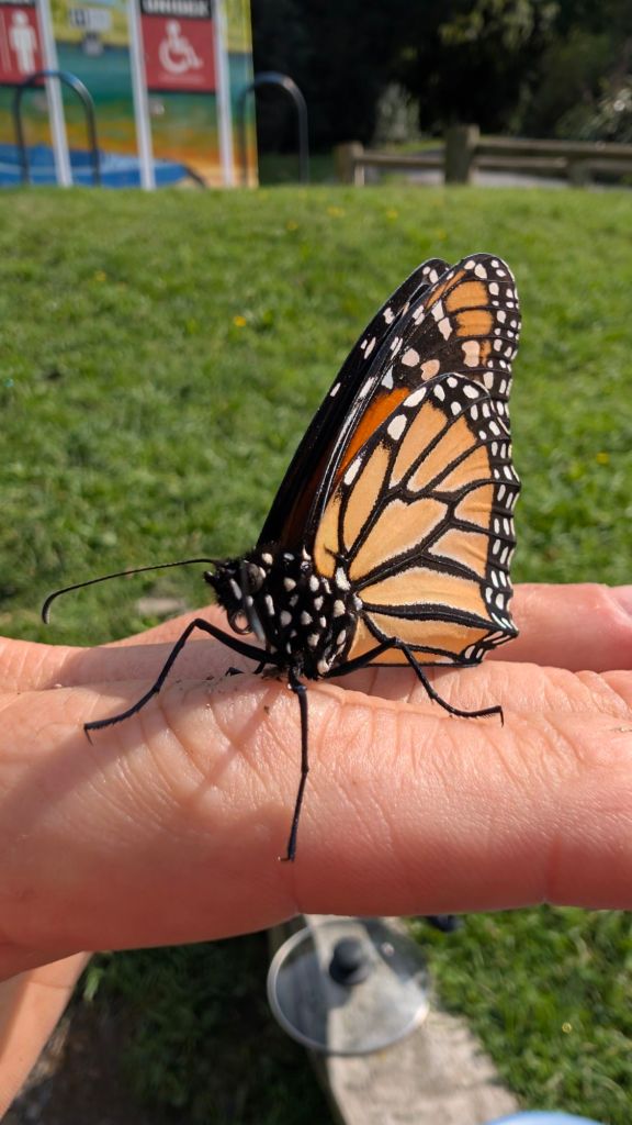 In the process of cleaning everything, I noticed this rather large butterfly that seemed to have something wrong with it. 😞 I don’t know if it was just old and dying, or if it was dazed and confused. It couldn’t fly, only flutter awkwardly to the ground.