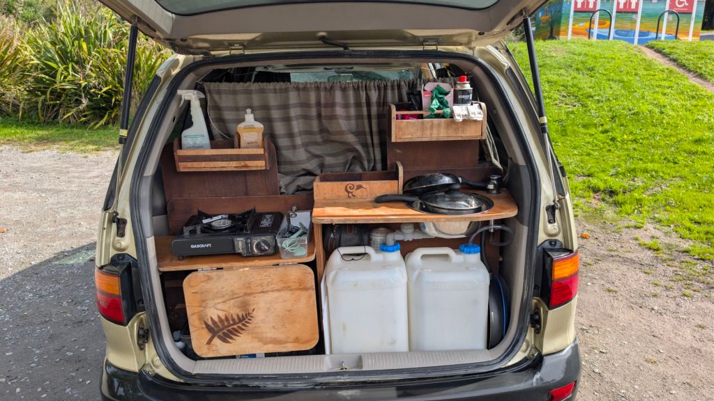 After a quick stop at Woolworth’s to dispose of my soft-plastic recyclables, I headed to my little riverside perch at Hipapatua Reserve, where I spent a good while cleaning out and organizing my van.