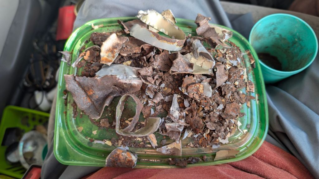 I stopped off at Hatfield Bay Reserve again to drop off recycling and trash, including finally just throwing away all the rusty metal shavings and chunks from my body work efforts.