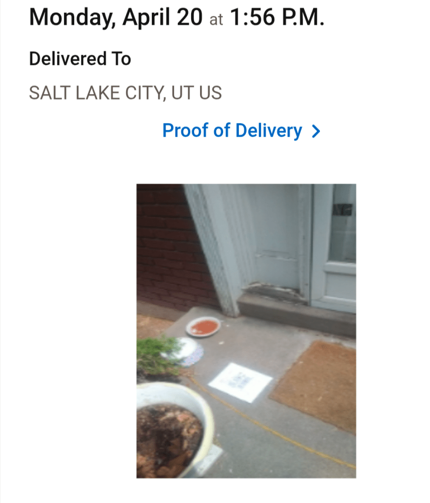 The super expensive overnight UPS service said that it had been delivered, and when I looked up the delivery information, there was a picture right there showing the envelope on the porch, but all I could see in the van was an Amazon envelope that had come for something I had gotten Cory while I was in New Zealand.